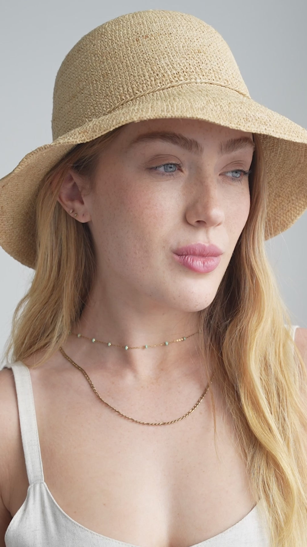 De Raffia Cloche is een fijn geweven cloche hoed met een praktisch, oprolbaar design. Vakkundig met de hand gemaakt van duurzaam geoogste raffia uit Madagaskar, biedt deze prachtige raffia hoed dames de perfecte mix van natuurlijke charme en tijdloze elegantie. Ben je op zoek naar een modieuze zonnehoed dames opvouwbaar voor je volgende vakantie? Dit lichtgewicht model rol je moeiteloos op in je koffer of strandtas. Geniet in stijl van heerlijke zomerdagen met deze betrouwbare, uv-werende zonnehoed dames die elke outfit compleet maakt.