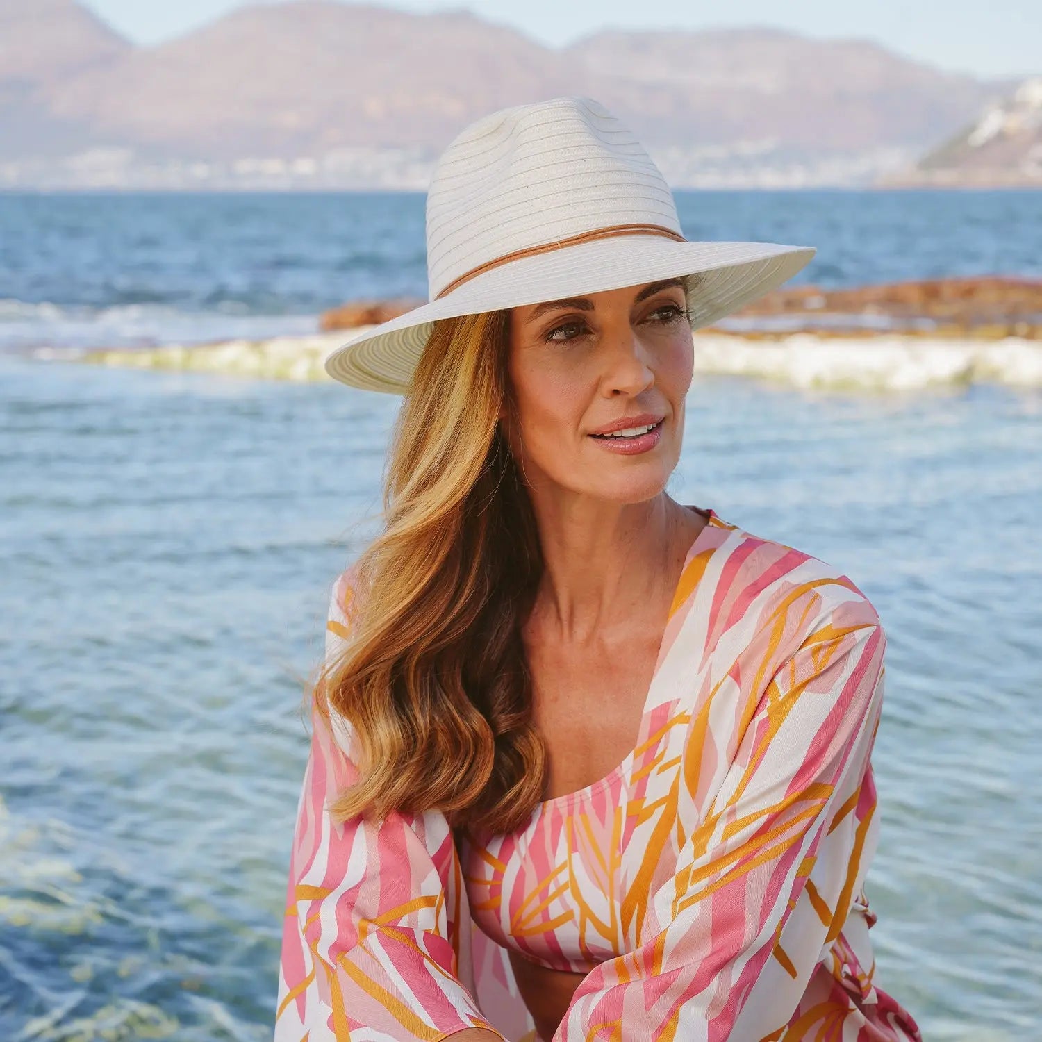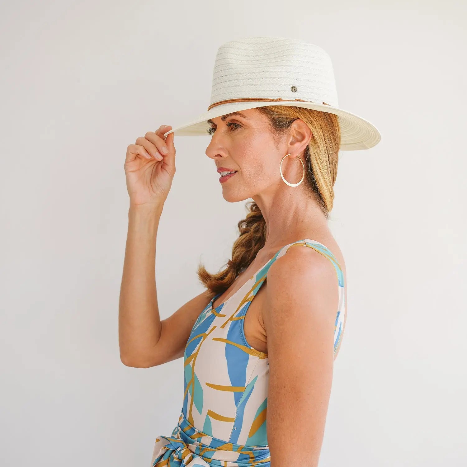 Ontspan, laad je batterijen op en ontdek alles wat de natuur te bieden heeft in stijl met de elegante en praktische Cabana Fedora – de perfecte zonnehoed voor zomerse avonturen. Of je nu naar het strand gaat, geniet van een brunch in de tuin of een weekendje weg gaat, deze reisvriendelijke hoed combineert mode met functionaliteit.